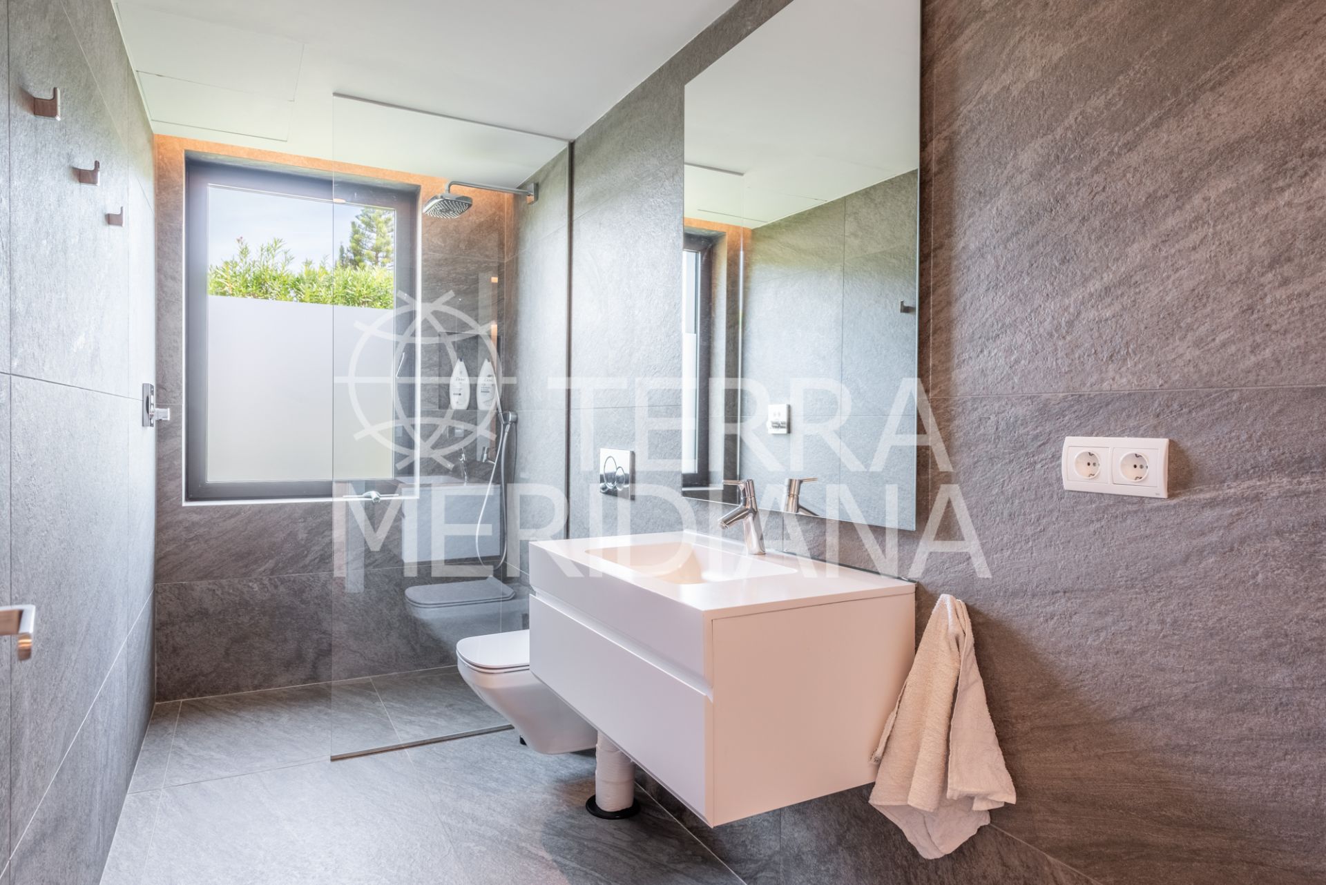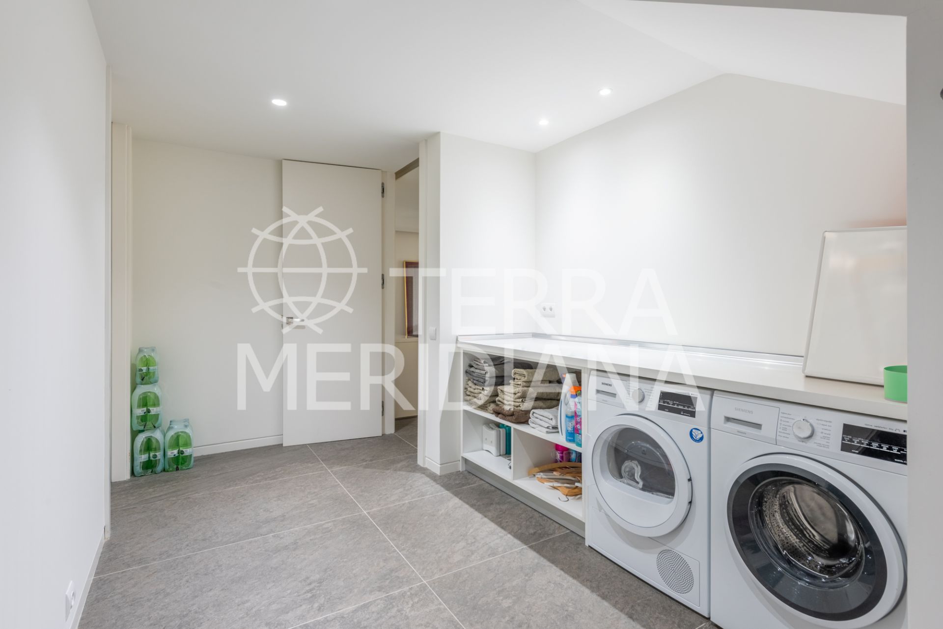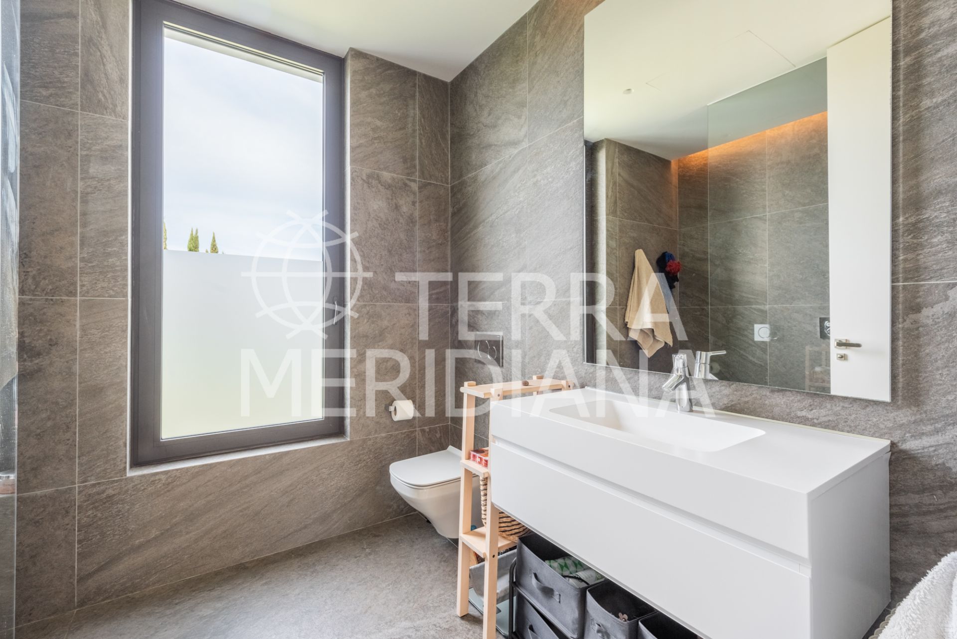 Multilevel contemporary style villa in a quiet location at the end of a cul-de-sac with views to the Almenara Golf Course. The spacious accommodation comprises of an entrance hall, study and master bedroom ensuite with dressing room on the top floor; TV room with fireplace, gymnasium, snug, 2 bedroom suites, guest toilet, living room with fireplace, dining room and fully fitted kitchen with access to the terrace, garden and pool area on the ground floor; 2 further bedrooms sharing 1 shower room, laundry room, storeroom, boiler room and double garage on the lower ground floor. Includes hot/cold air conditioning, underfloor heating, aluminium double glazing and solar panels.
