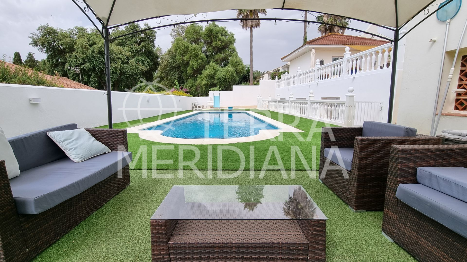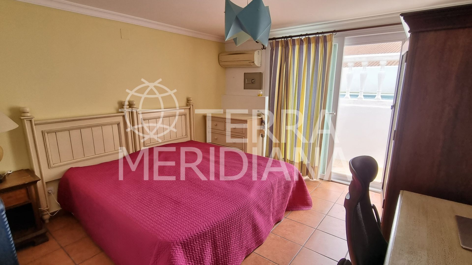 Set on a private plot, the villa’s exterior is designed for leisure and entertaining. A large terrace provides space for outdoor dining and lounging, complemented by an inviting private swimming pool. Multiple shaded and sun-drenched areas ensure year-round enjoyment of Sotogrande’s excellent climate.