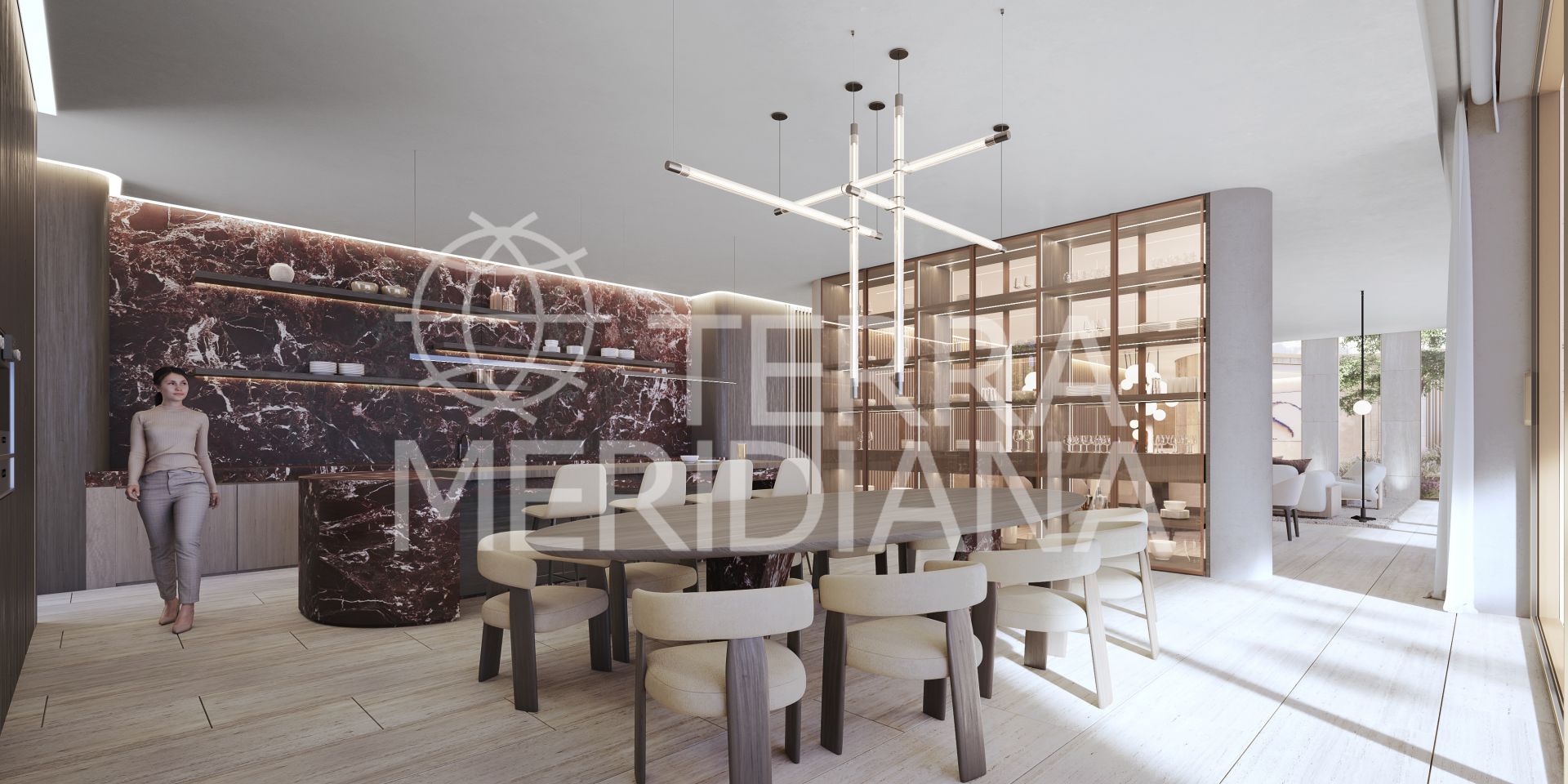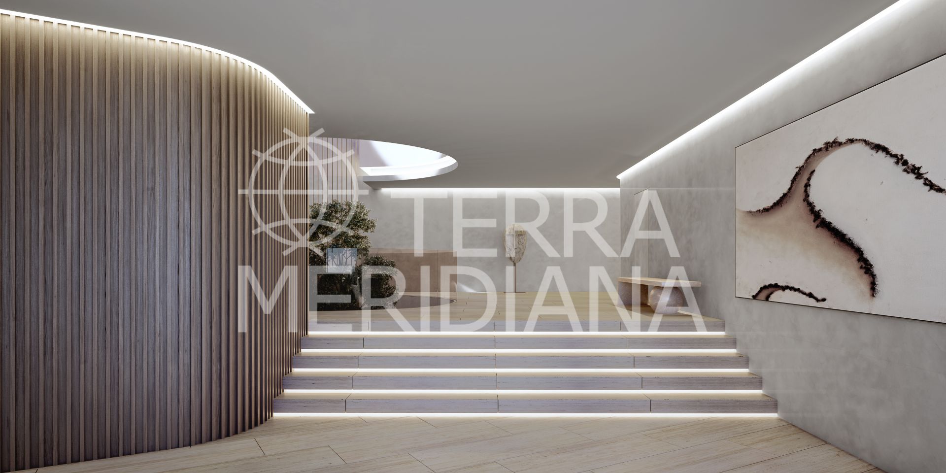 The planned residence will encompass a total built area of 2,482 square meters across three floors. It features 7 bedrooms and 9 bathrooms, a dedicated spa and gym area, and a private parking area with space for four cars. The design philosophy is centered on the connection of nature, space, natural light, and a sustainable lifestyle. Each room flows seamlessly, enhancing the sense of spaciousness and continuity. The expansive main living area, featuring high ceilings, interior courtyards, and the kitchen, opens generously onto an infinity pool and the stunning views beyond. Light is an ever-present element, flowing through the house in a symphony of nuances. The master suite is a lavish private retreat of almost 200 square meters, integrating the bedroom, dressing room, bathroom, and a private terrace, all with spectacular views. The lower floor is dedicated to wellness and entertainment, integrating the spa (also with marvelous views), gym, wine cellar, TV room, and vehicle accommodation.