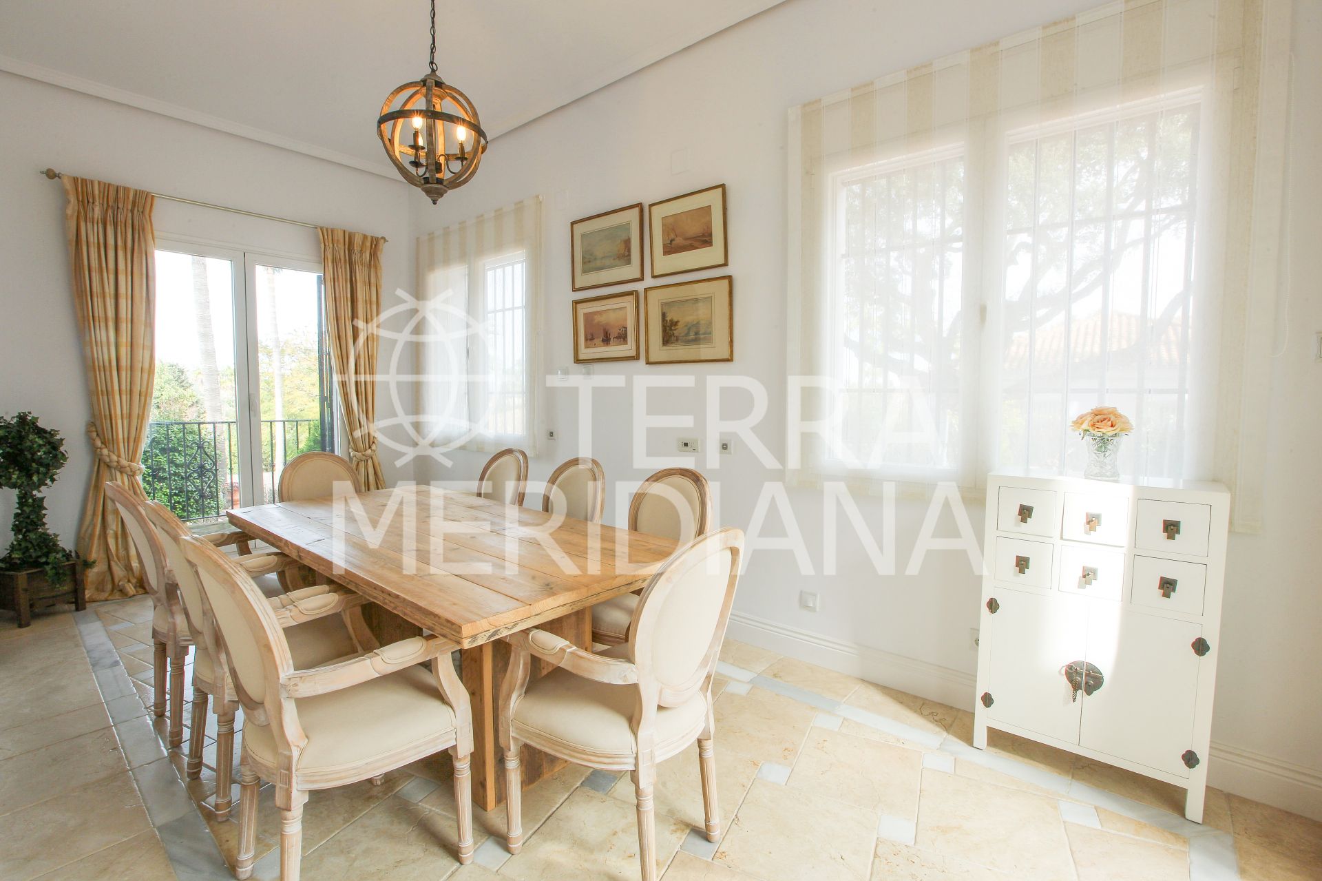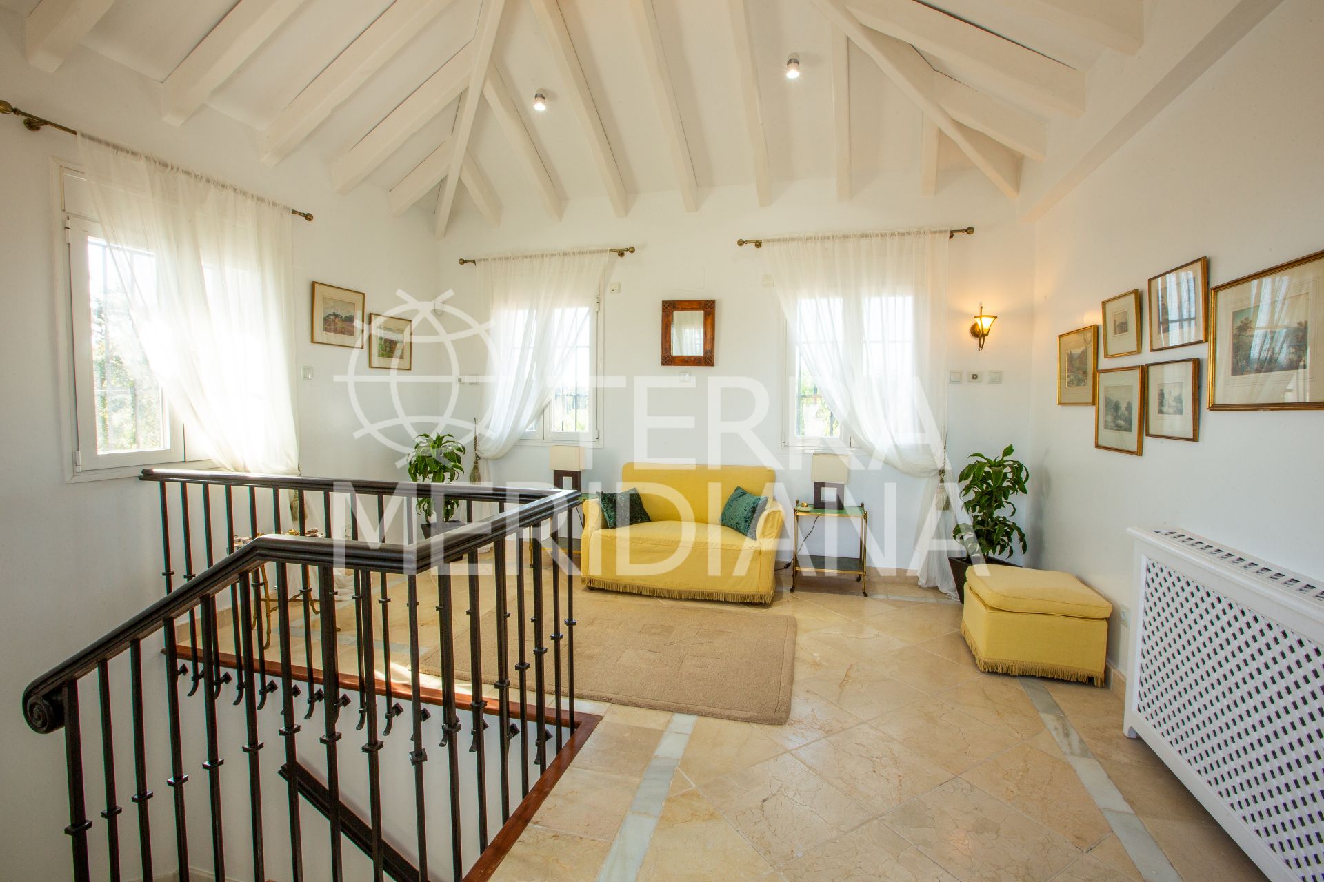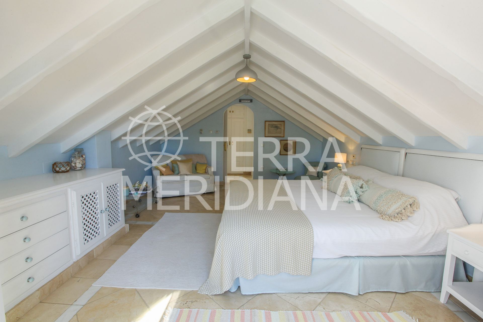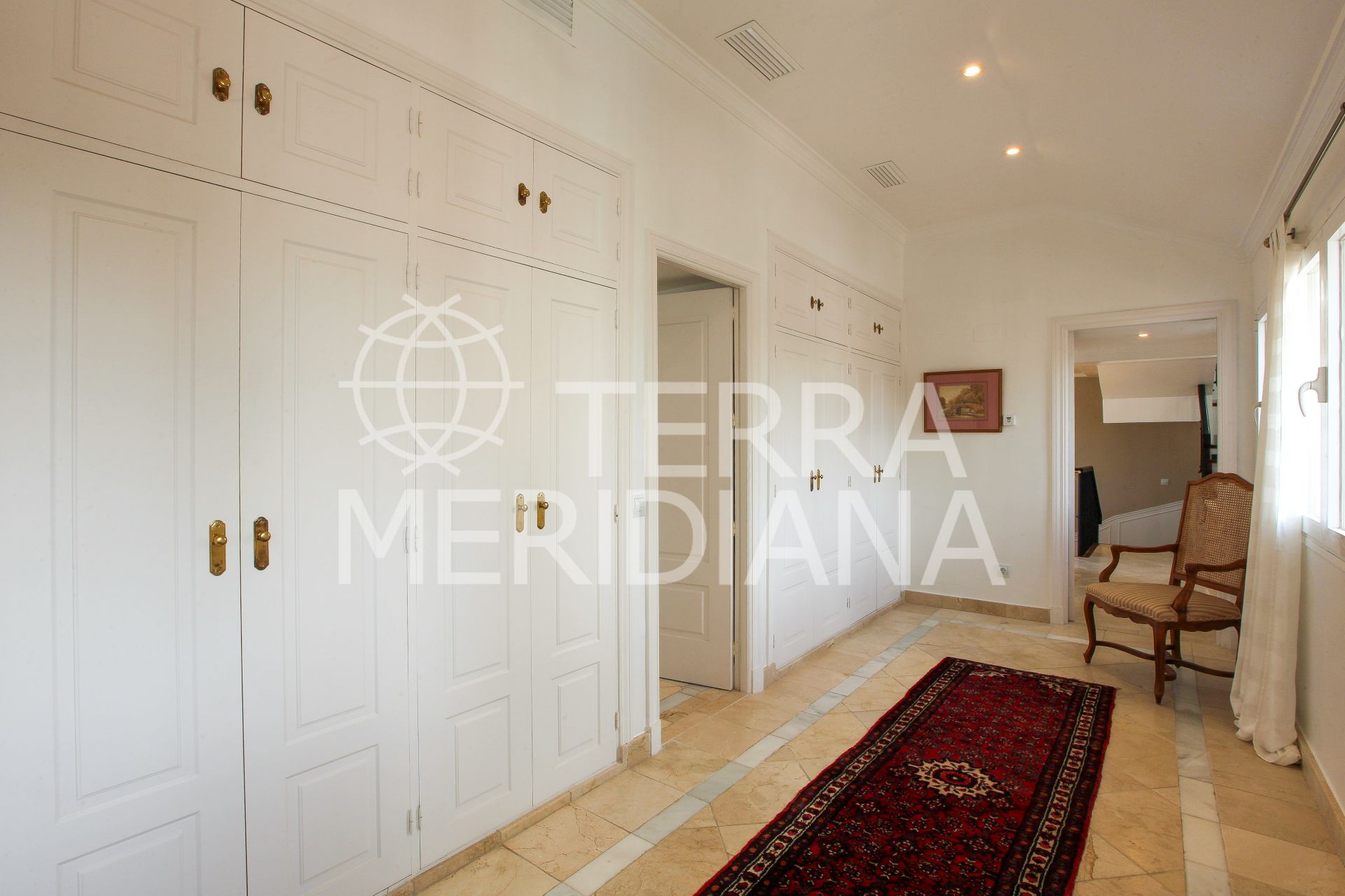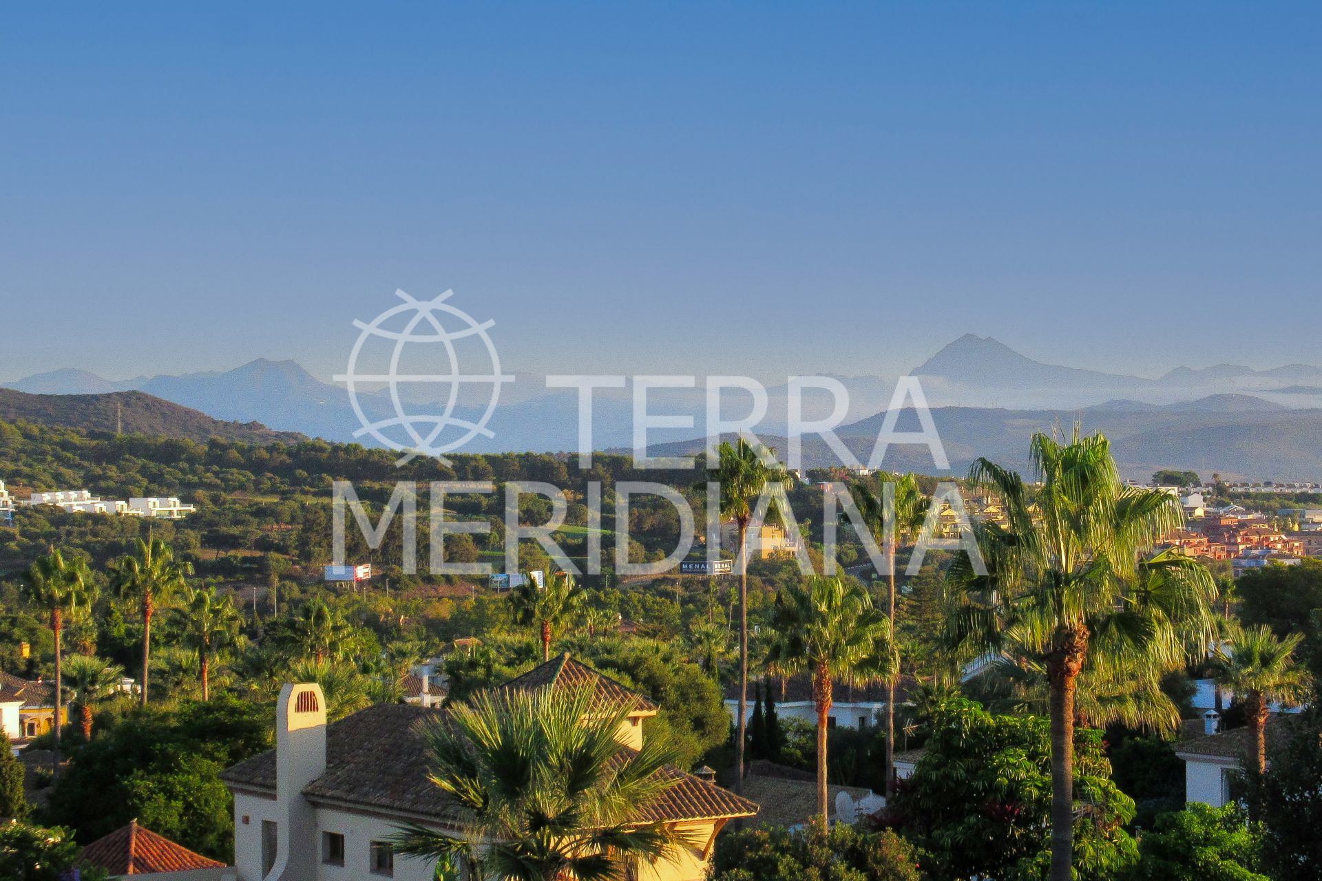 This stunning southwest-facing, two-story villa with a distinctive tower room is situated on an elevated corner plot in Sotogrande’s prestigious B Zone. Offering exceptional privacy, abundant natural light, and captivating views of the Sierra Bermeja mountains, this home is designed for luxurious living.