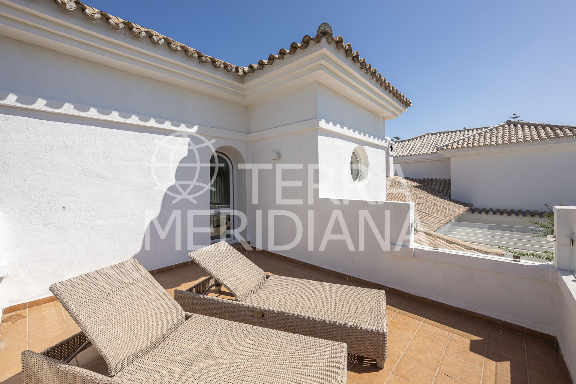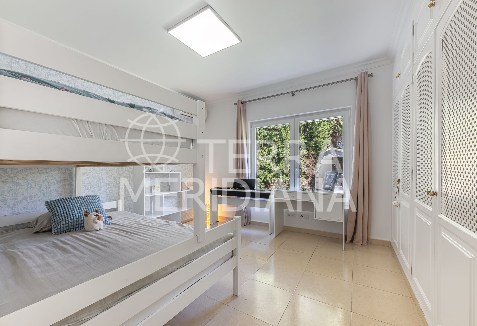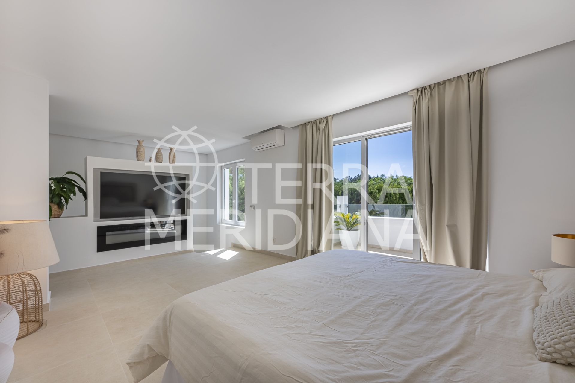 Highlights • Five ensuite bedrooms, including two master suites • Light-filled open-plan living area • Expansive terraces on both sides of the villa • Swimming pool & private gardens • Air conditioning & central heating • Fireplace • Automatic irrigation system • Conveniently close to schools, golf courses, and polo fields