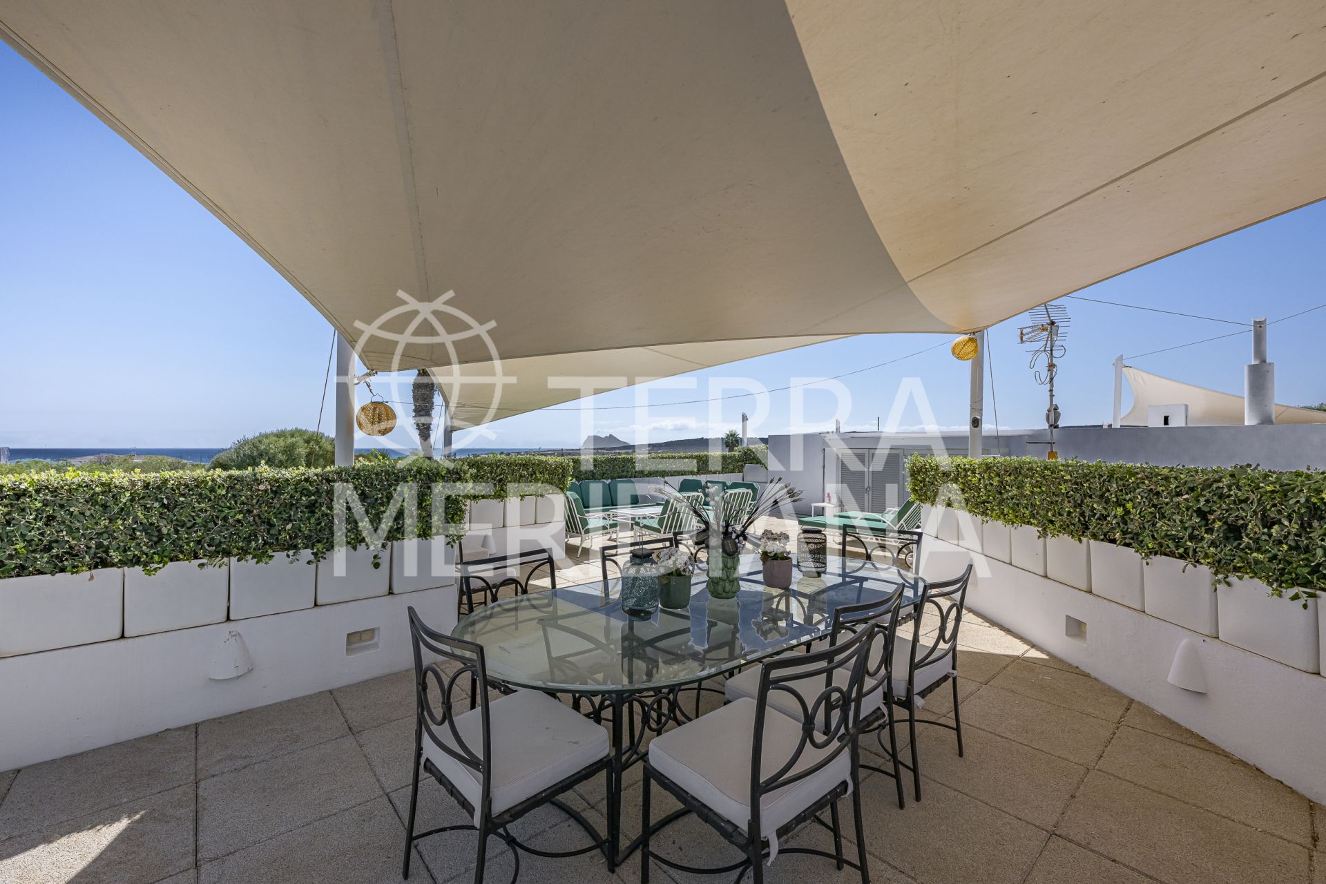 This single-storey semi-detached bungalow with a roof terrace was completely rebuilt in 2010. Upon entering, you are greeted by a beautiful walled garden with plunge pool (currently a jacuzzi) and an open, light-filled layout with large windows and skylights.
